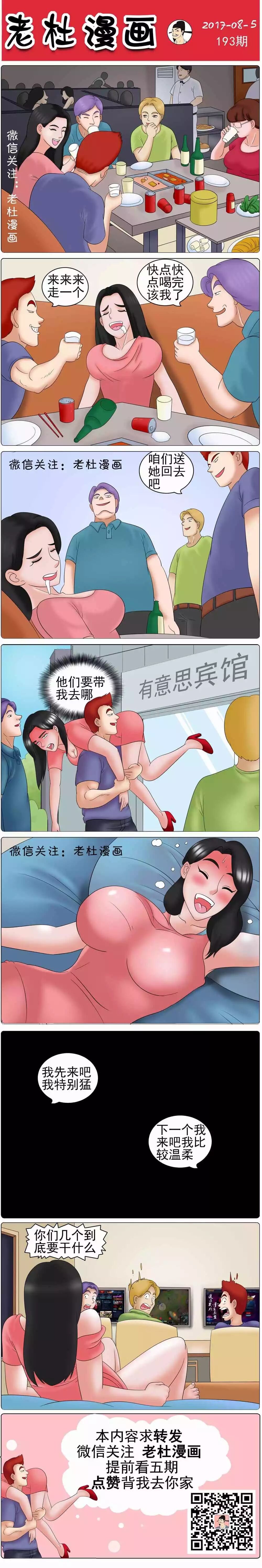 《老杜漫画》第193期:美女酒醉被三个壮汉扛到宾馆后....